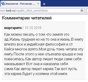 Основатель секты "эниология" - Рогожкин В. Ю. - паразит с параноидально-шизоидным синдромом, использующий своих ущербных адептов (среди которых большинство - женщины под 40 с неудавшийся личной жизнью) для грязной работы в обход их сознания. Не читайте его книгу и не слушайте его семинары, а то рискуете закончить свою жизнь в психиатрической лечебнице с голосами в голове и мыслями о суициде.